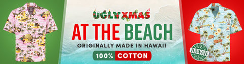 Die Hawaii-Hemden von UglyXmas werden in Honolulu, der Hauptstadt von Hawaii, hergestellt. Die Hemden sind aus 100% Baumwolle und leicht. Sie fallen geräumig und fühlen sich angenehm luftig auf der Haut an. Ideal für einen Partytiger, der gerne feiert und tanzt. Knöpfe aus Kokosnussschalen vervollständigen dein Aloha-Hemd.